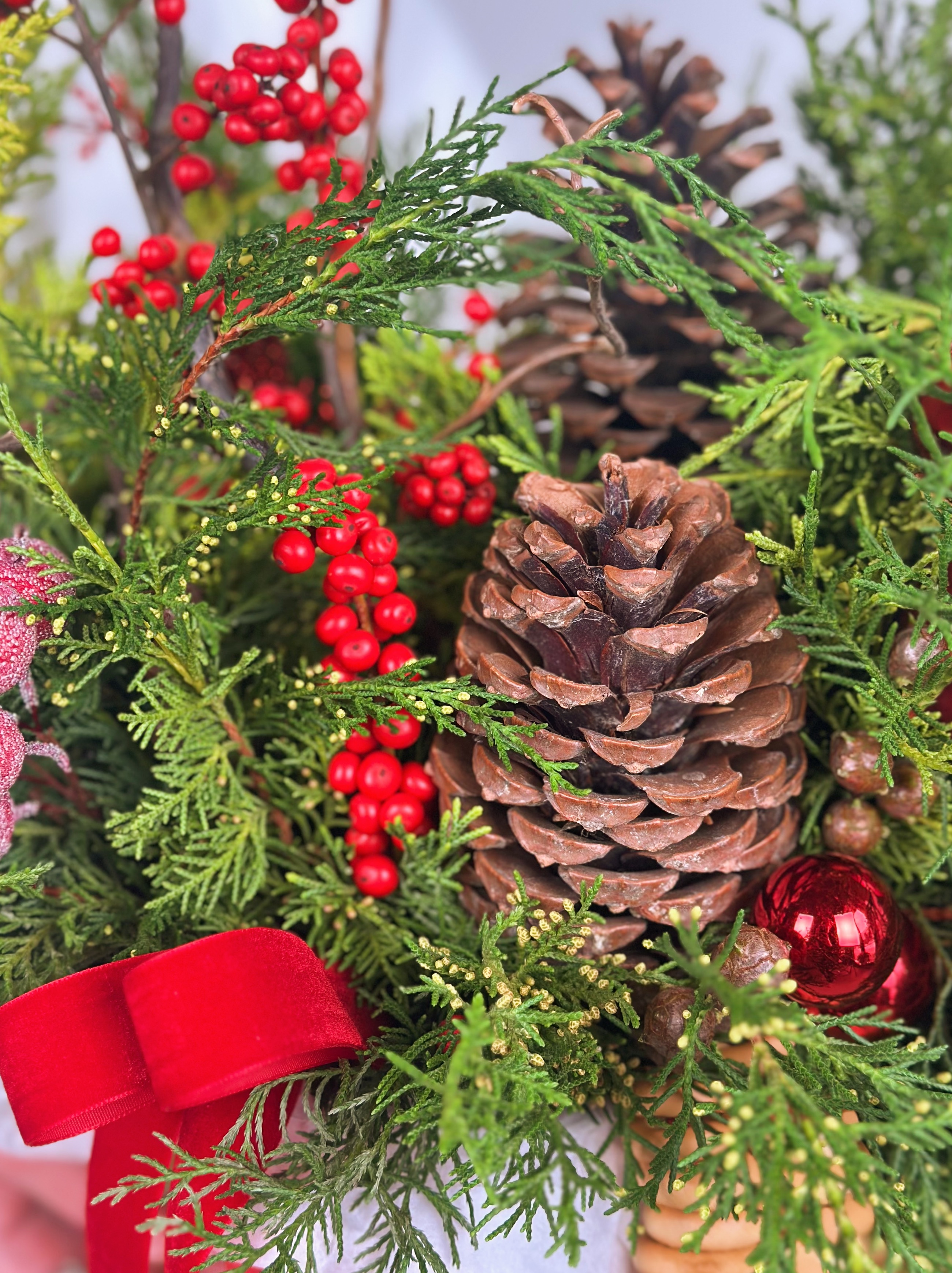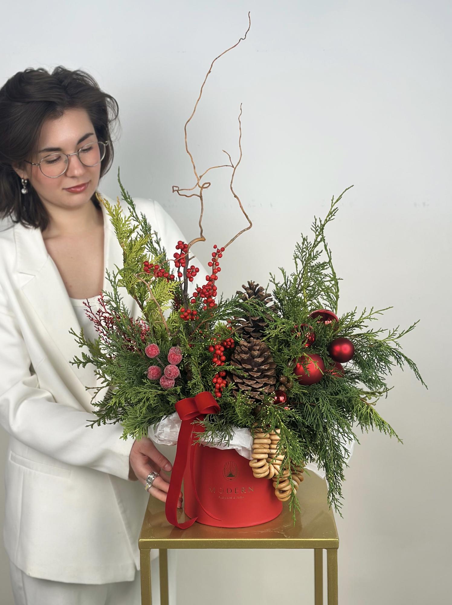 БОЛЬШАЯ КОМПОЗИЦИЯ ИЗ ХВОИ И ИЛЕКСА В РУССКОМ СТИЛЕ