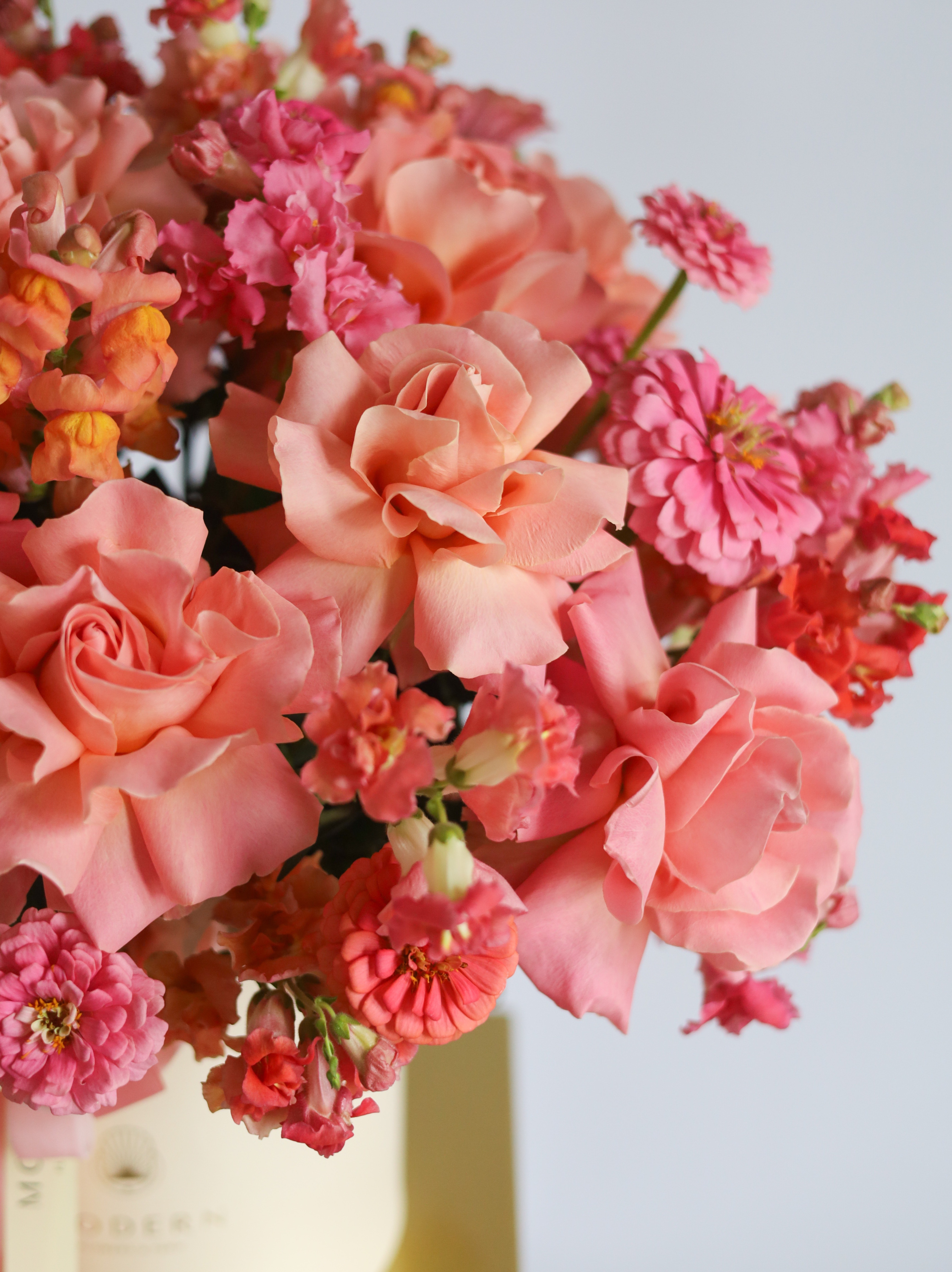 Цинния добавляет композиции яркости и объема, привнося в букет нотки природной свежести и жизнерадостности.