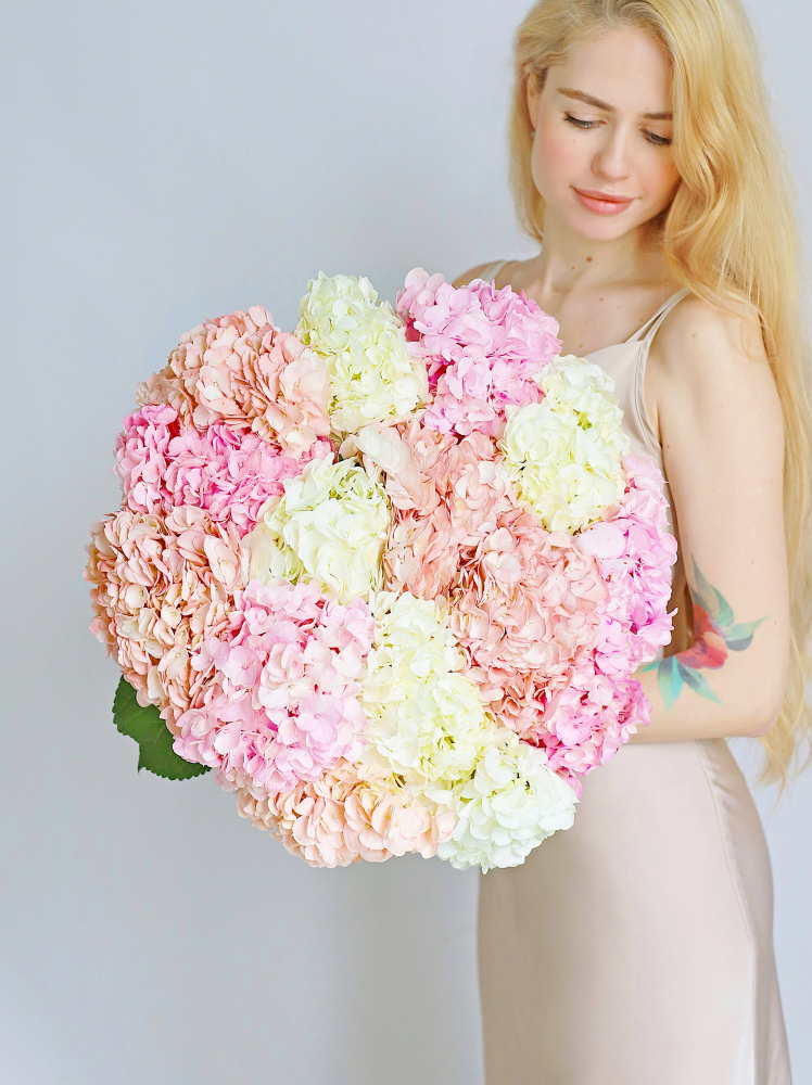 Представляем вашему вниманию великолепную монокомпозицию, состоящую из 15 роскошных гортензий — символ изобилия и искренних чувств.