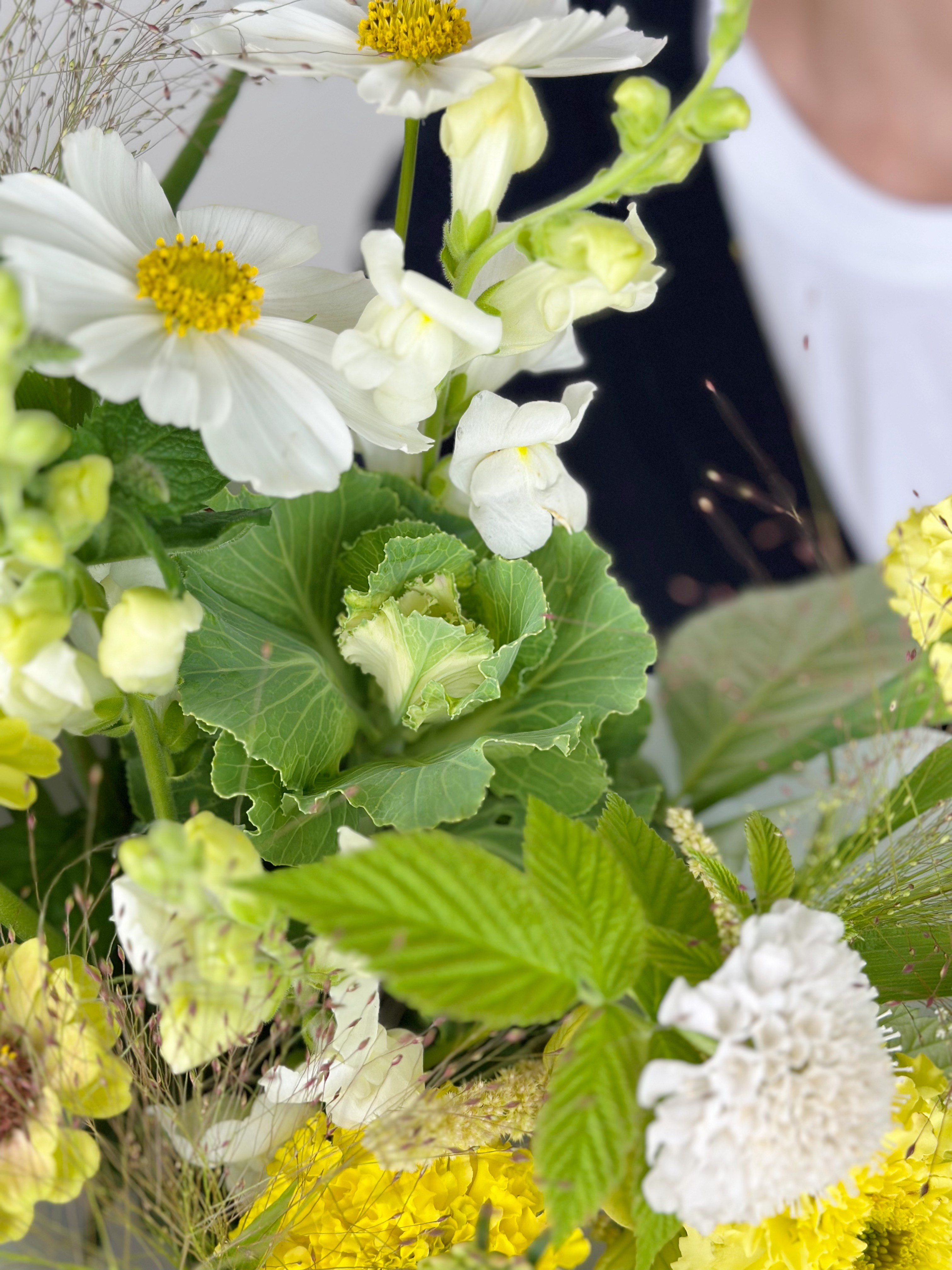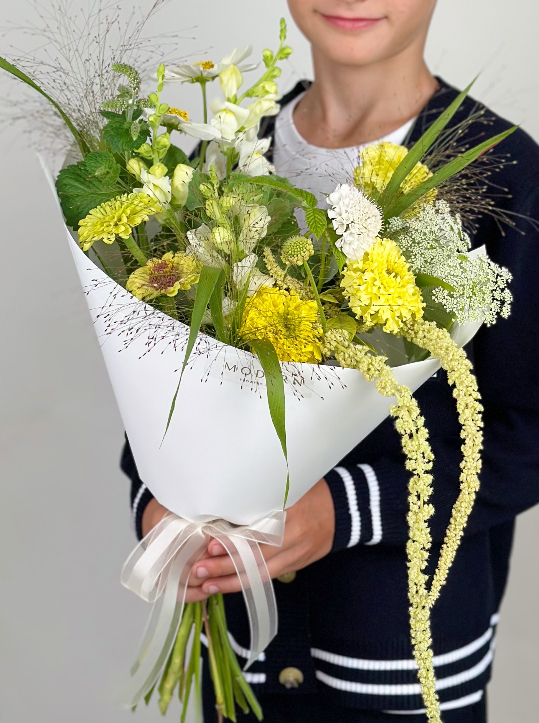 —БУКЕТ ИЗ ФЕРМЕРСКИХ ЦВЕТОВ С КОСМЕЕЙ И АМАРАНТОМ