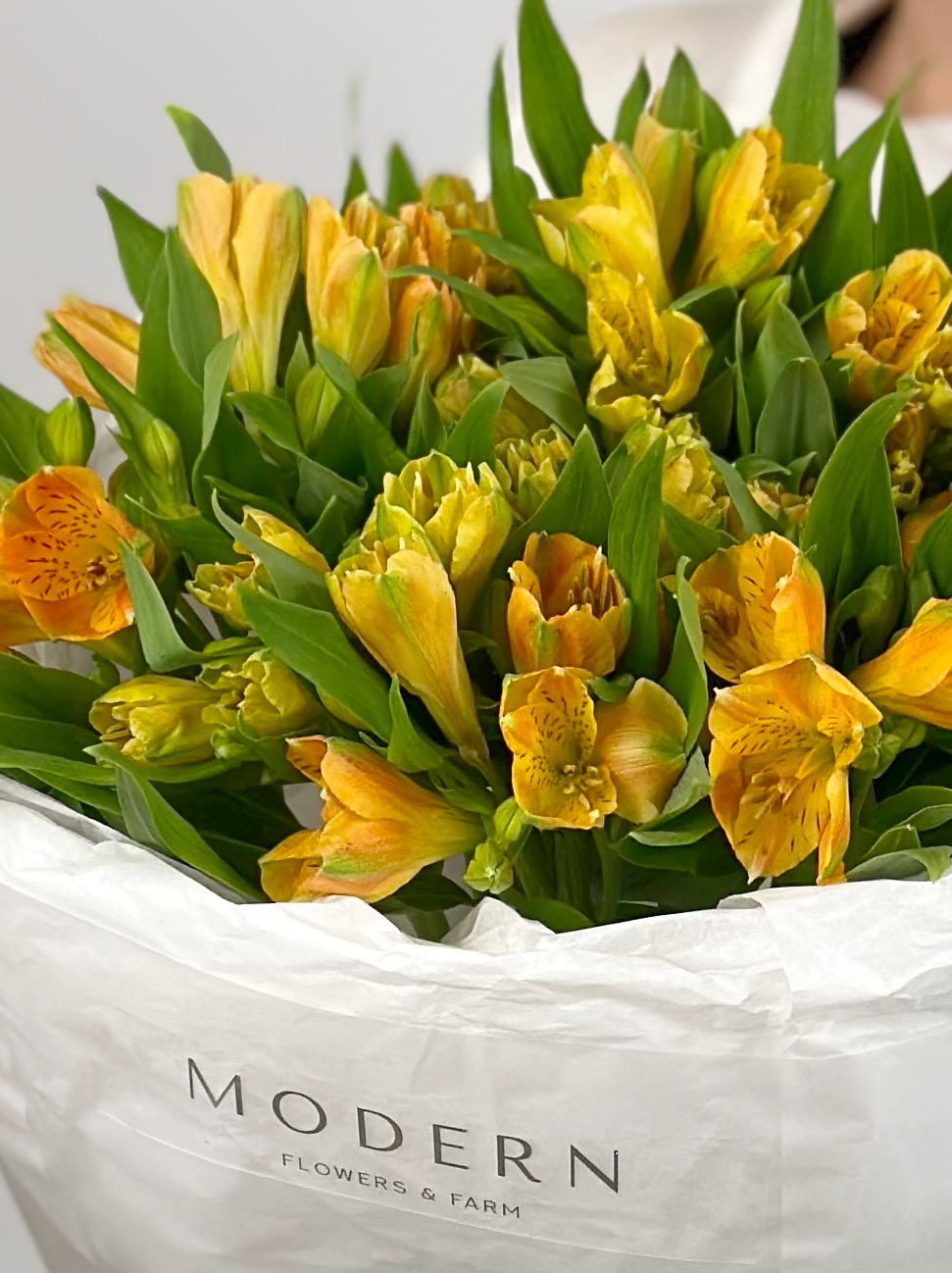 БУКЕТ ИЗ ЖЕЛТО-ОРАНЖЕВЫХ АЛЬСТРОМЕРИЙ
