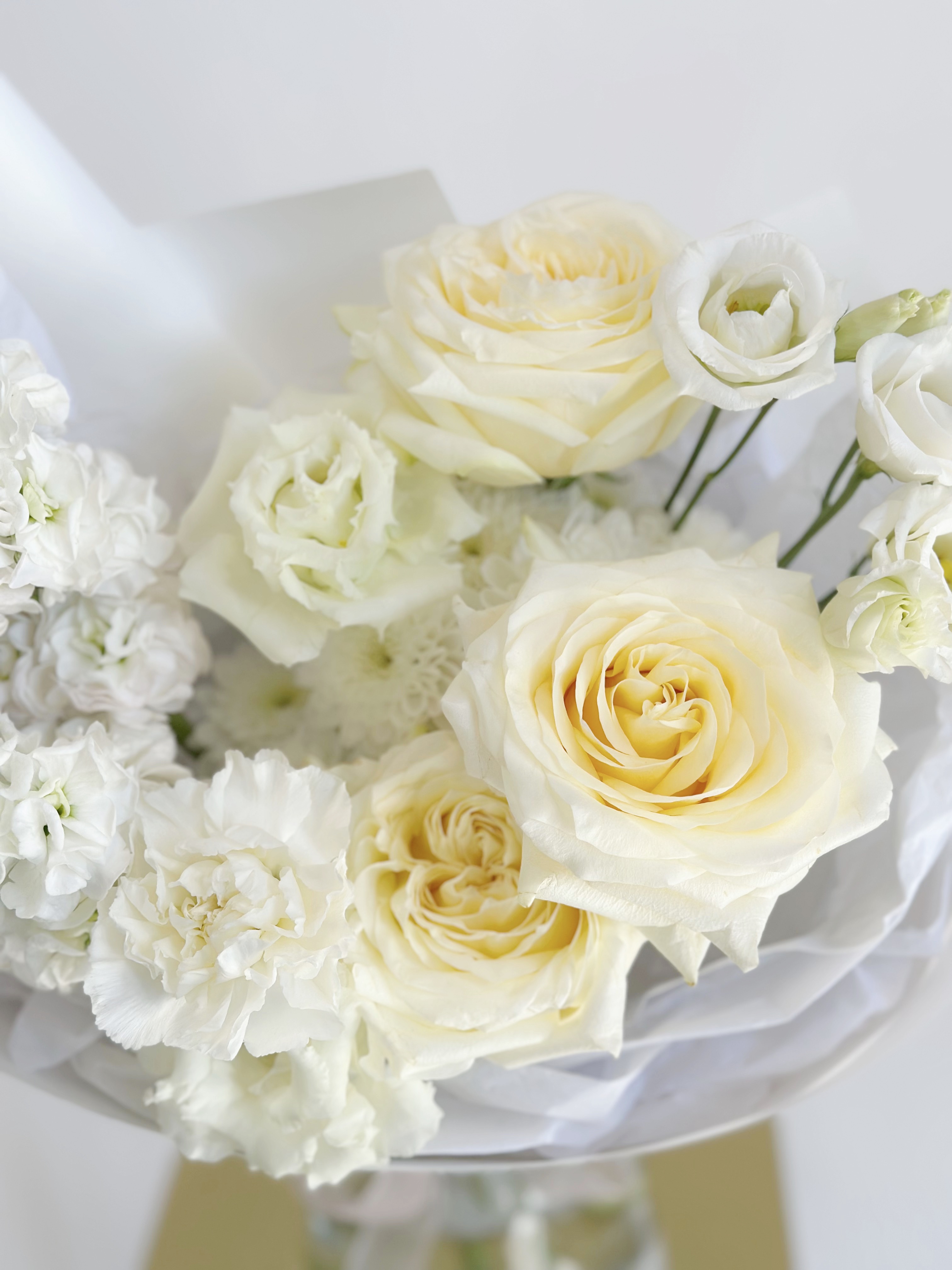 БУКЕТ ПИОНОВИДНАЯ РОЗА, ЭУСТОМА, МАТТИОЛА