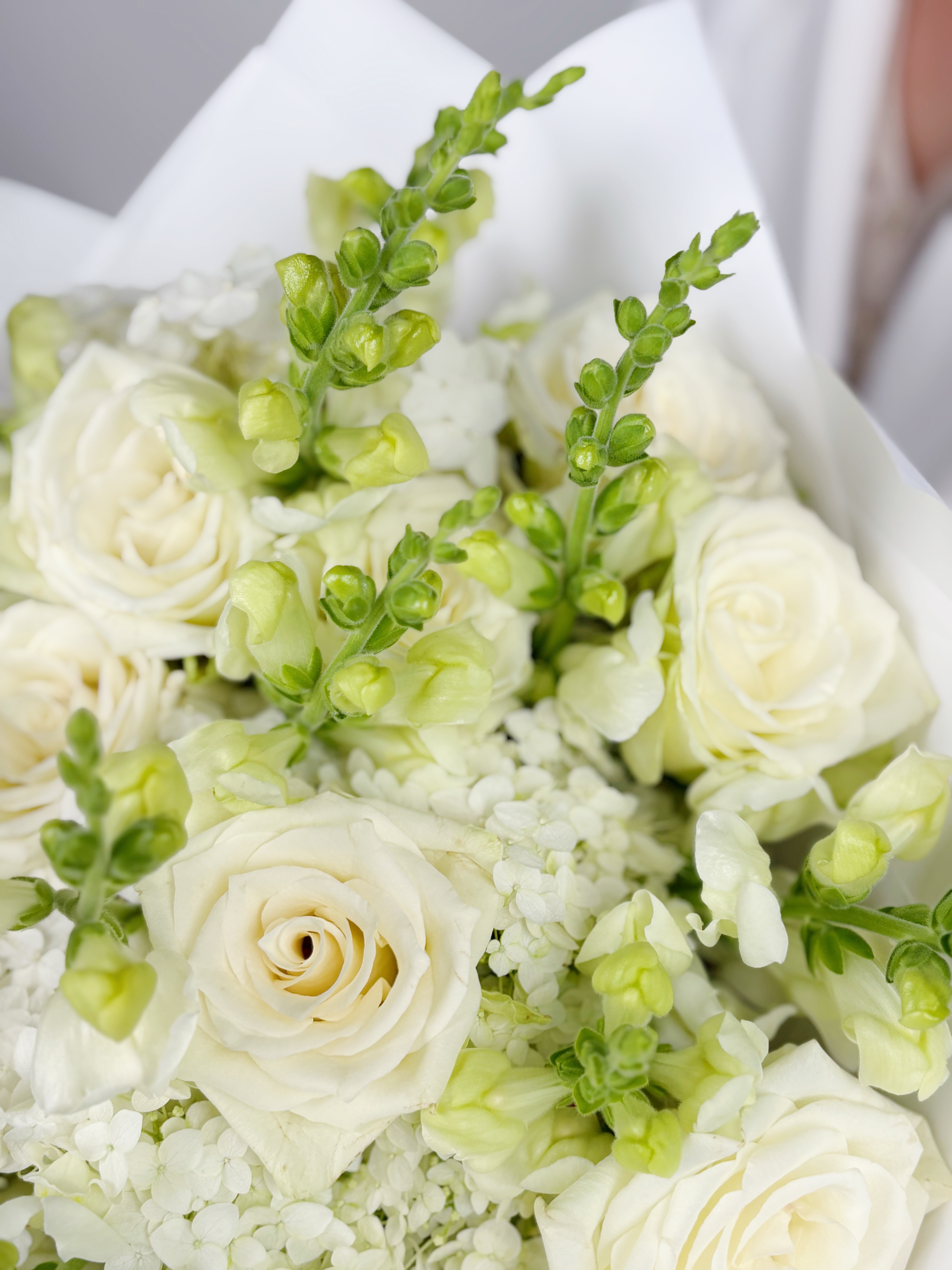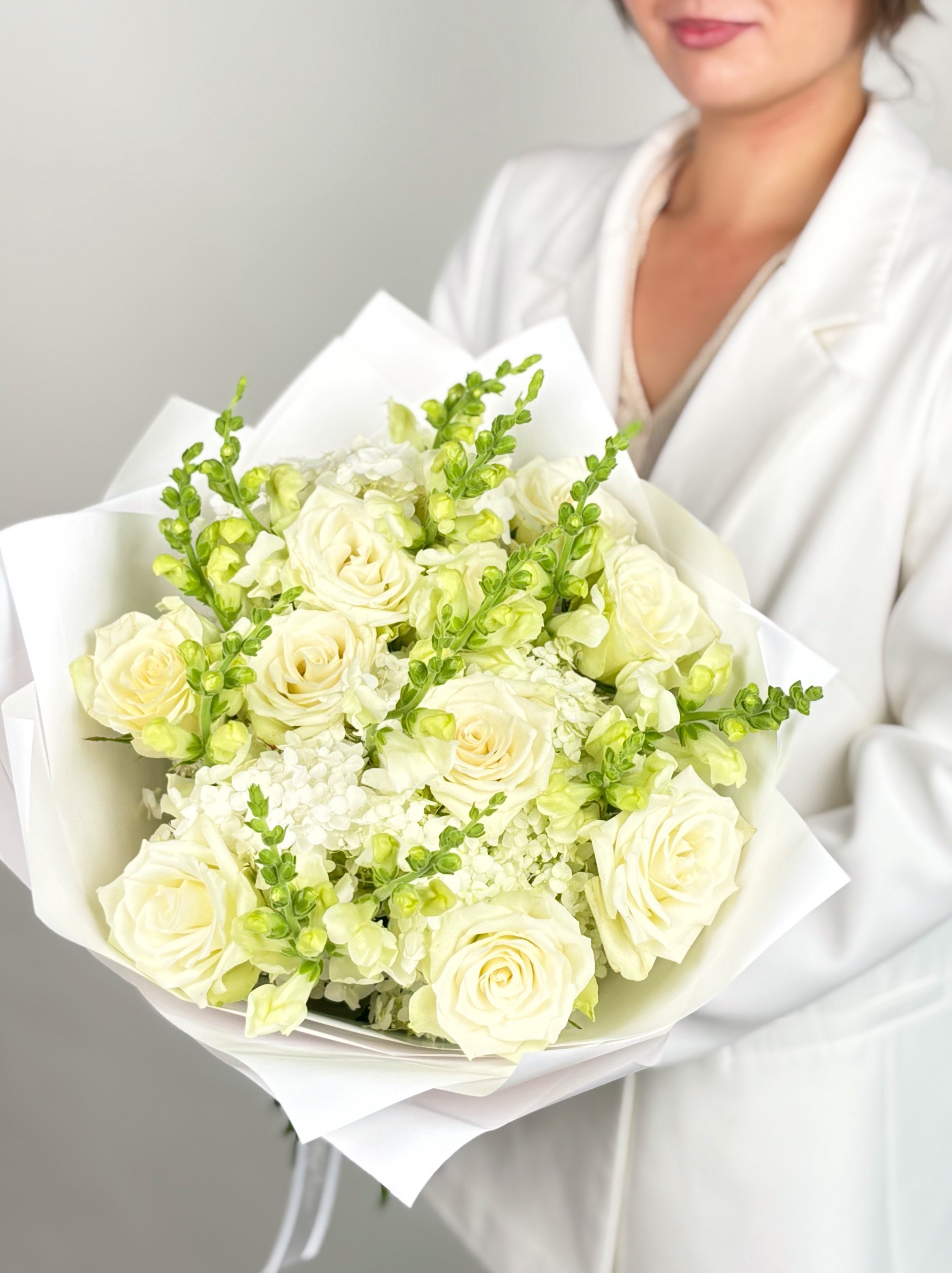 БУКЕТ С БЕЛОЙ РОЗОЙ И ГОРТЕНЗИЕЙ