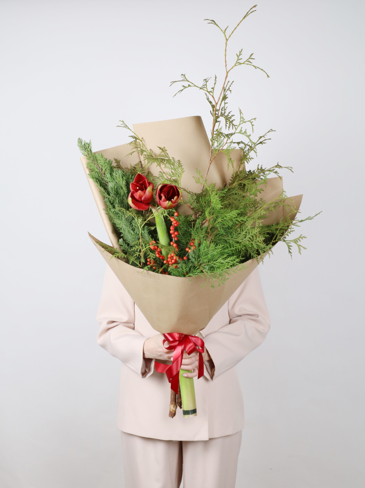 ХВОЙНЫЙ МИКС С ИЛЕКСОМ И АМАРИЛЛИСОМ