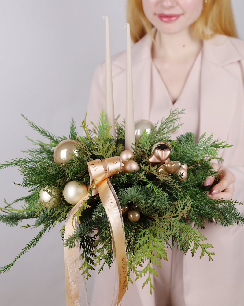 ТОРЖЕСТВЕННАЯ КОМПОЗИЦИЯ НА СТОЛ СО СВЕЧАМИ