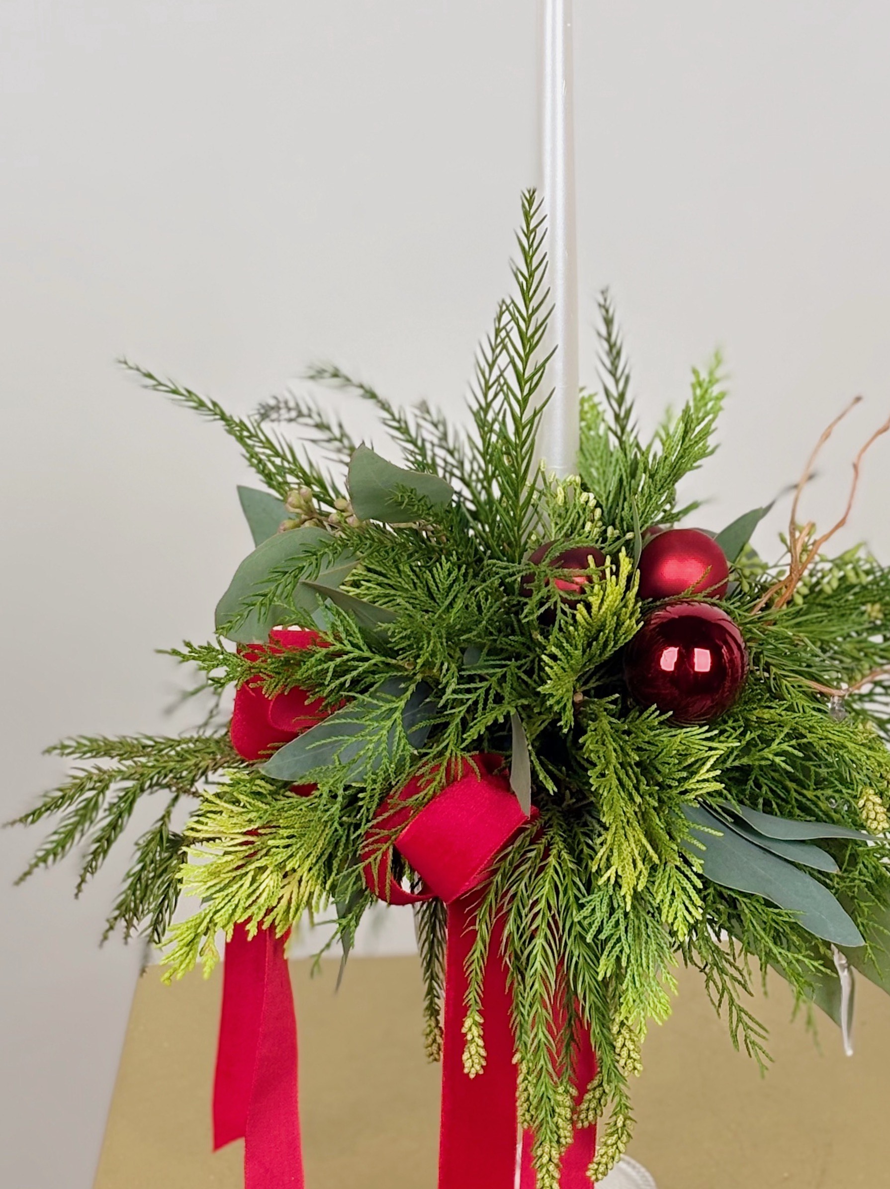 —ХВОЯ В БОКАЛЕ СО СВЕЧЕЙ В КРАСНОМ ОТТЕНКЕ