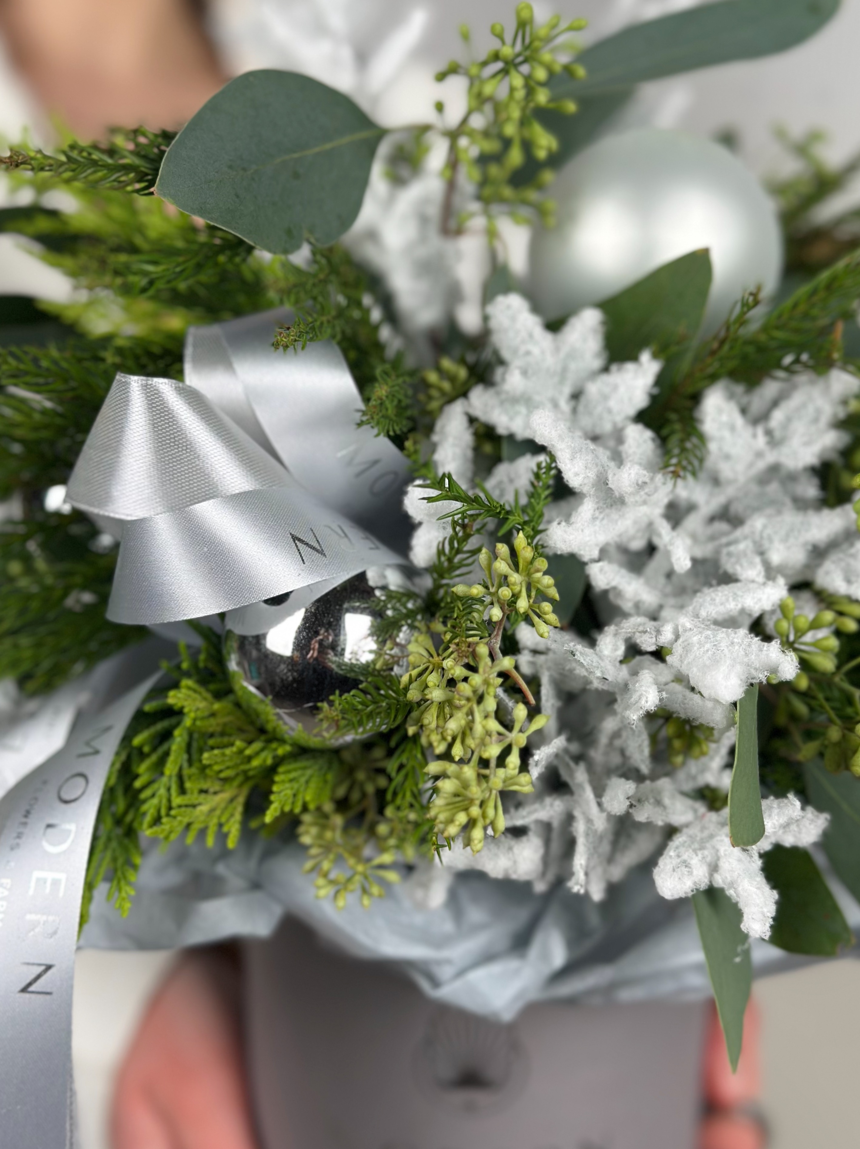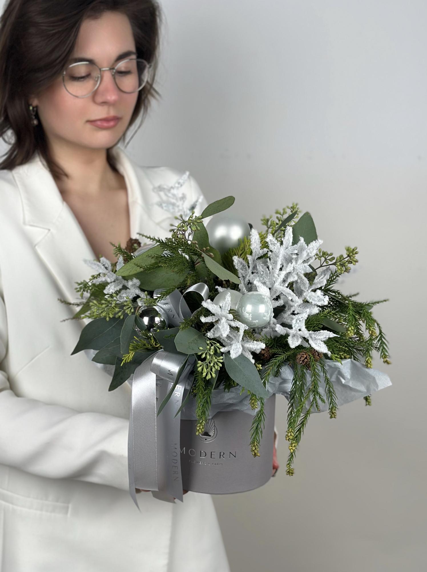 —КОМПОЗИЦИЯ ИЗ ХВОИ И ЭВКАЛИПТА В ШЛЯПНОЙ КОРОБКЕ