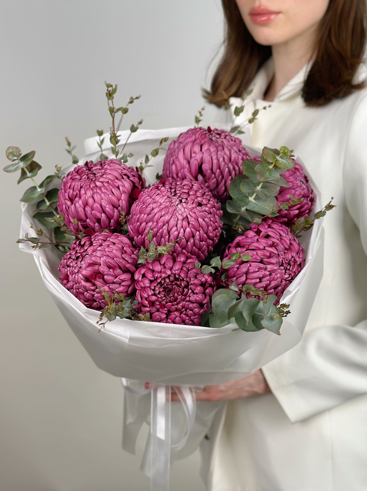 БУКЕТ С ХРИЗАНТЕМОЙ И ЭВКАЛИПТОМ
