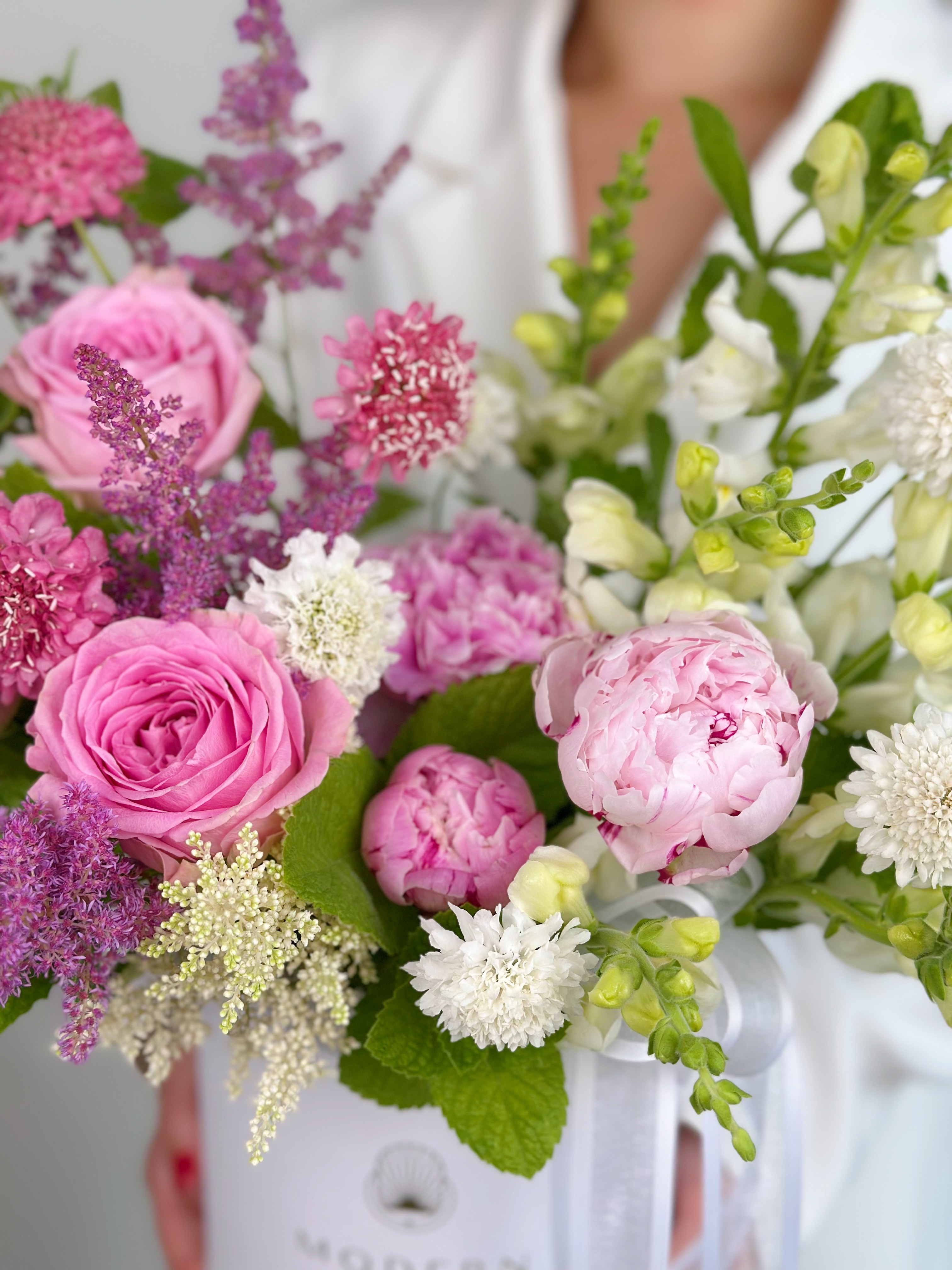 НЕЖНАЯ КОМПОЗИЦИЯ С ПИОНОМ И АСТИЛЬБОЙ
