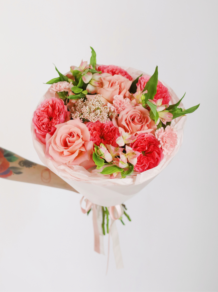 • вид и количество упаковки (мы предлагаем оформлять классические букеты в разноцветную дизайнерскую бумагу, тишью и крафт)
