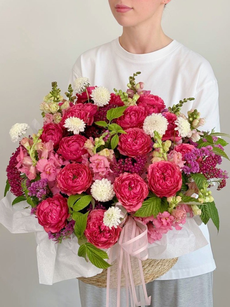 ЯРКИЙ БУКЕТ С ПИОНОВИДНОЙ РОЗОЙ И МАЛИНОЙ ЯРКИЙ БУКЕТ С ПИОНОВИДНОЙ РОЗОЙ И МАЛИНОЙ
