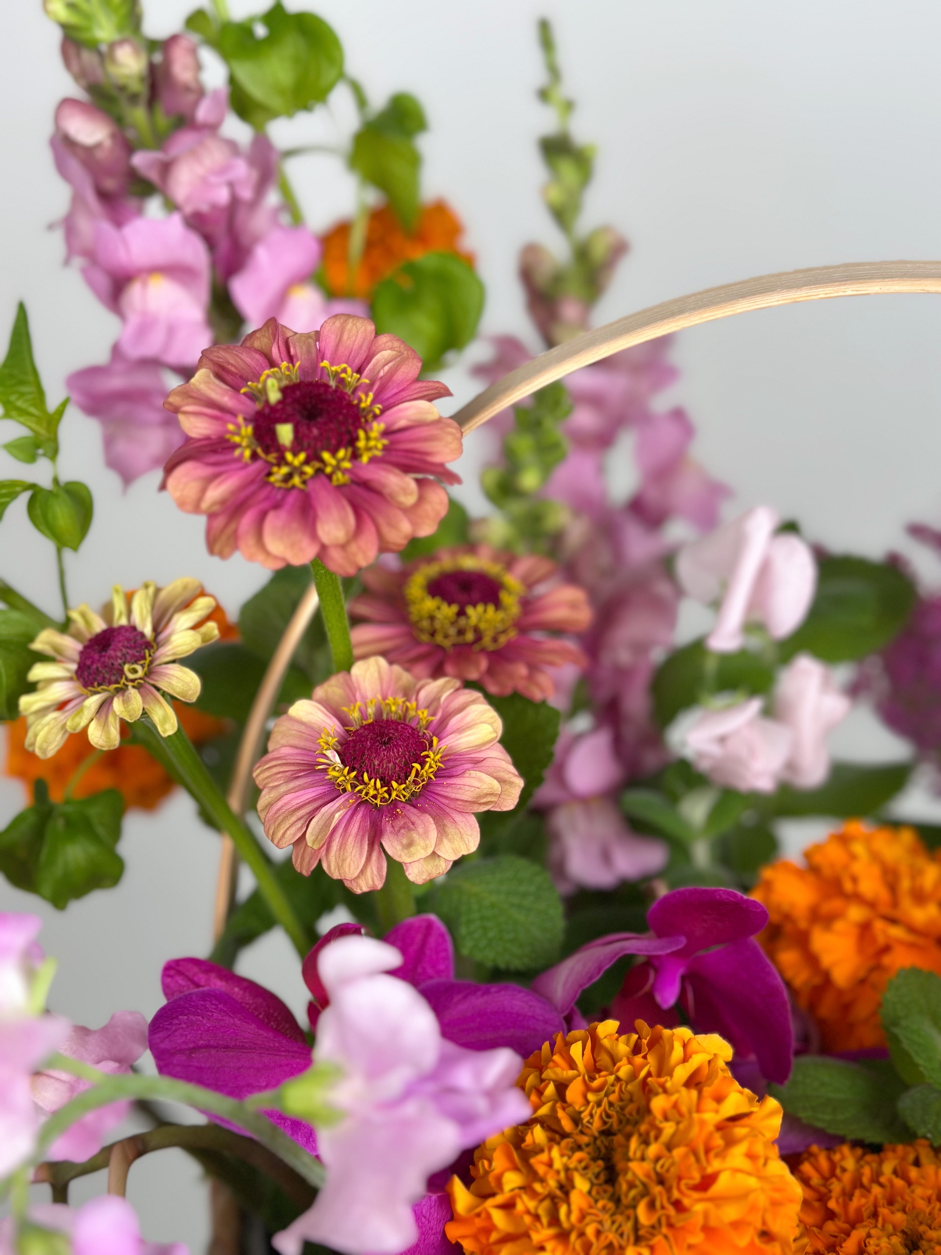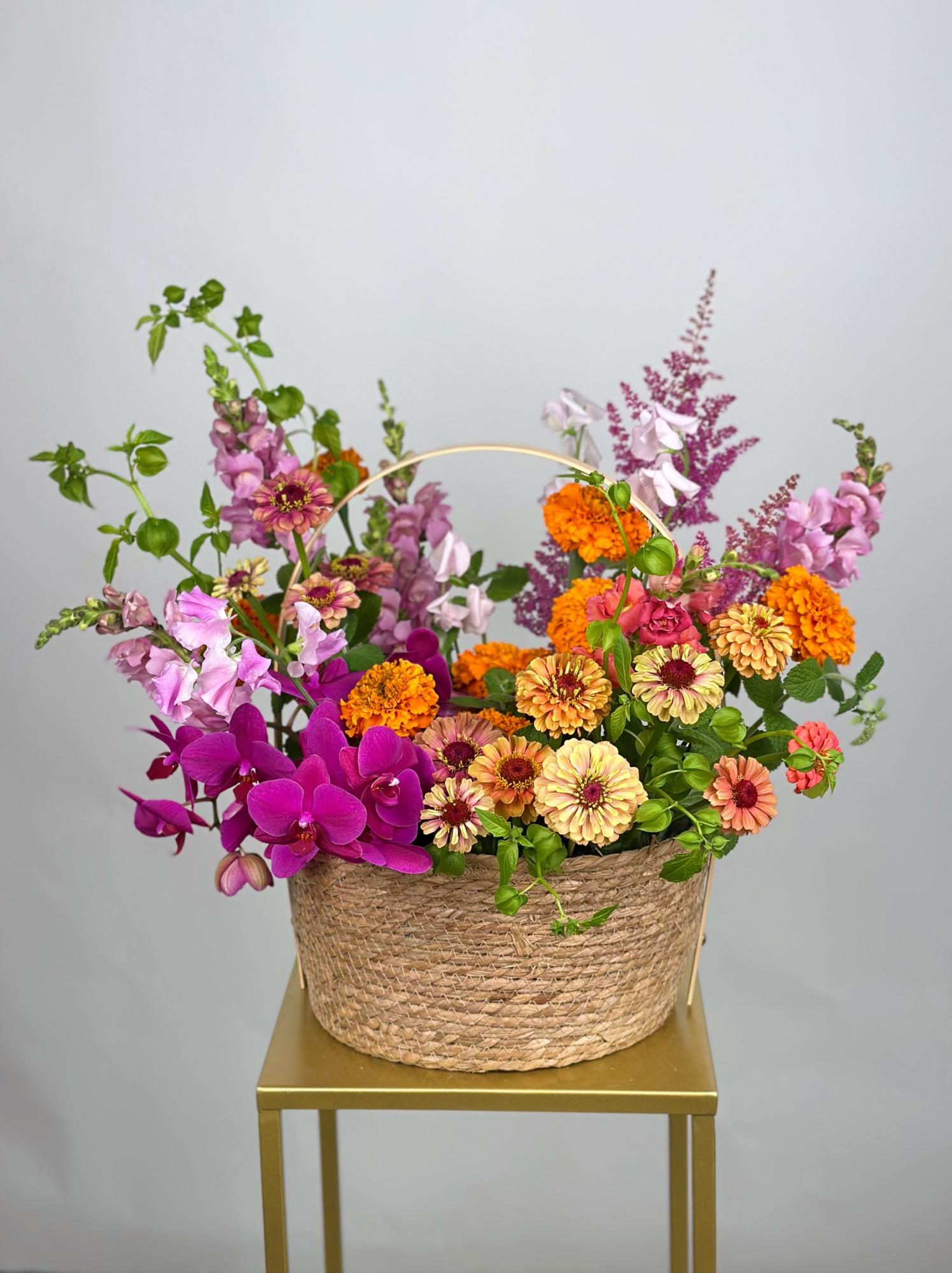 ЯРКАЯ КОРЗИНА С ЛЕТНИМИ ЦВЕТАМИ